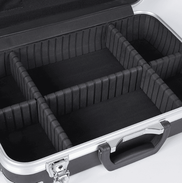 - Waterproof hard-case with customizable foam inserts and shock-absorbing layers for secure storage and portability.